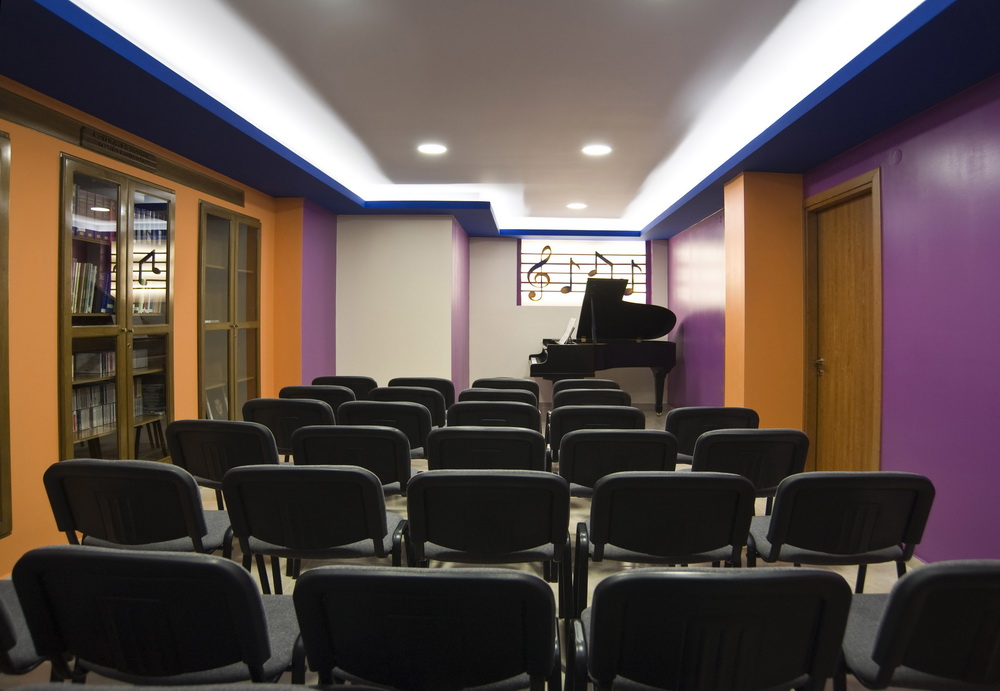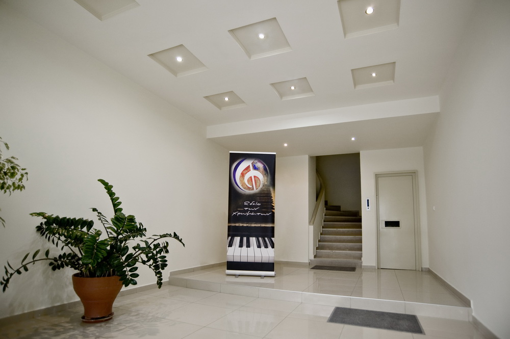 • Μεγάλη Αίθουσα συναυλιών χωρητικότητας 130 ατόμων, για την διδασκαλία της χορωδίας, των "μουσικών συνόλων" των μαθητών του Ωδείου, της παιδικής χορωδίας, της νεανικής χορωδίας, της χορωδίας Γονέων της ορχήστρας Νέων του Ωδείου μας και φυσικά για όλα τα Σεμινάρια που θα γίνουν, τις Συναυλίες και τις εκδηλώσεις μας.