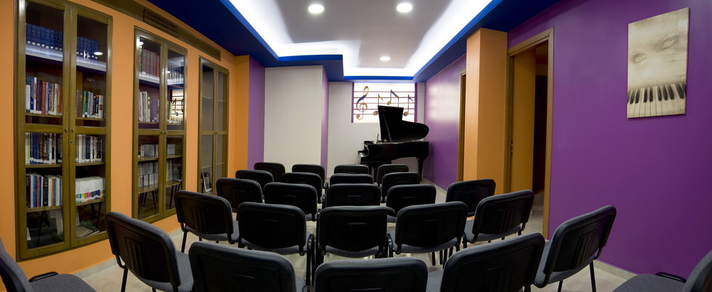 • Μικρή Αίθουσα συναυλιών χωρητικότητας 30 ατόμων, για την διδασκαλία της χορωδίας και των μουσικών συνόλων των μαθητών του Ωδείου.
